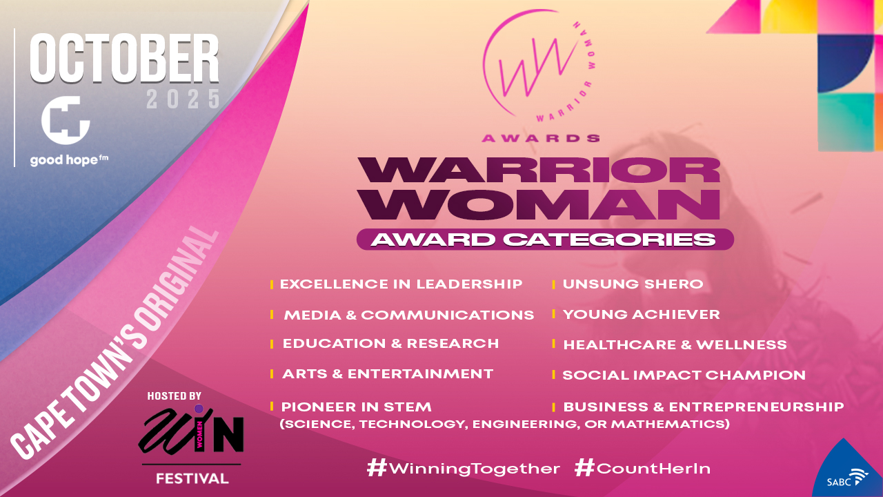 For the Warrior Woman Awards, get all the need-to-know info on how to nominate your favourite leading ladies by staying tuned to Good Hope FM, following us on all social media, downloading the Good Hope FM App, or visiting www.GoodHopeFM.co.za. You can also get all of Good Hope FM and the SABC’s best content by heading on over to SABC PLUS (https://SABC-PLUS.com/).
